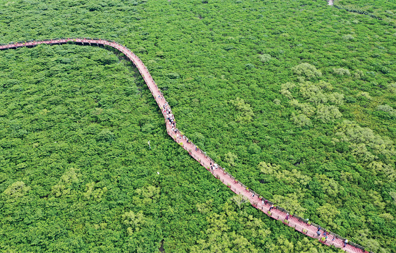 推動(dòng)綠色發(fā)展,建設(shè)生態(tài)文明,重在建章立制。近年來(lái),廣西北侖河口國(guó)家級(jí)自然保護(hù)區(qū)所在的廣西防城港市建立紅樹林精細(xì)“管、護(hù)、研”一體化工作機(jī)制,全面開展巡護(hù)管理、科研監(jiān)測(cè)、宣傳教育、社區(qū)共管、生態(tài)修復(fù)等各項(xiàng)工作,有效推動(dòng)紅樹林生態(tài)系統(tǒng)質(zhì)量全面提升。圖為2024年8月24日拍攝的廣西北侖河口國(guó)家級(jí)自然保護(hù)區(qū)的紅樹林。 新華社記者 陸波岸/攝